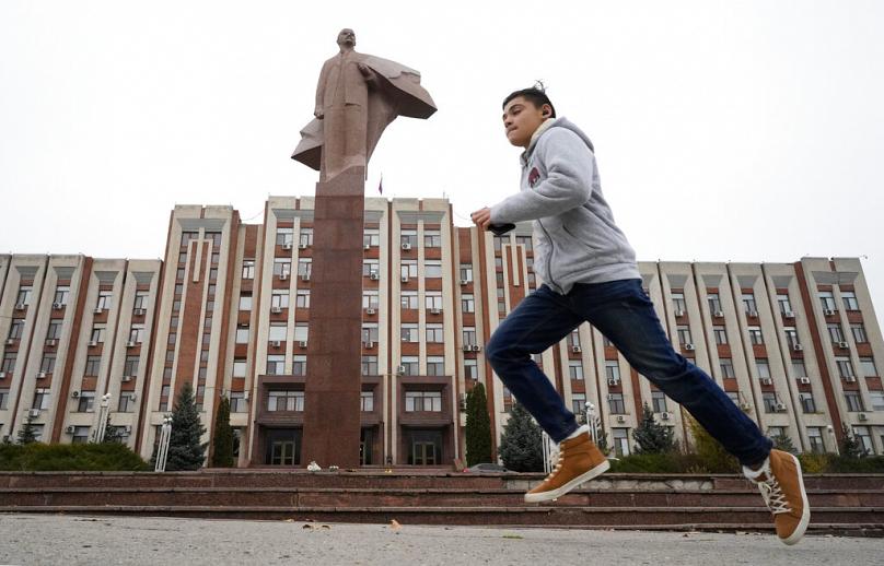(980070 Transdinyester’in başkenti Tiraspol’da Birliği’nin kurucusu Vladimir Lenin’ininin yanından koşarak gider